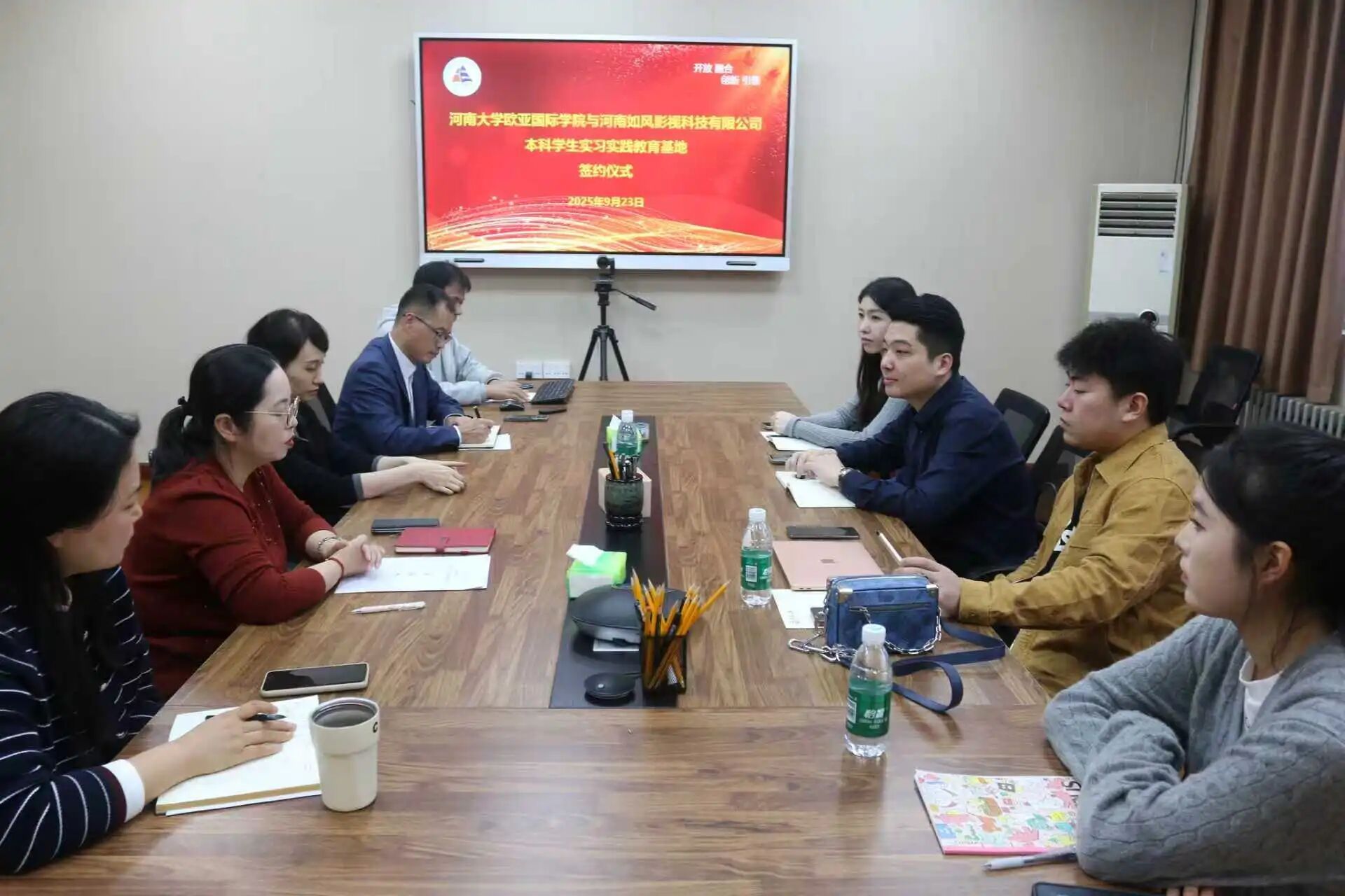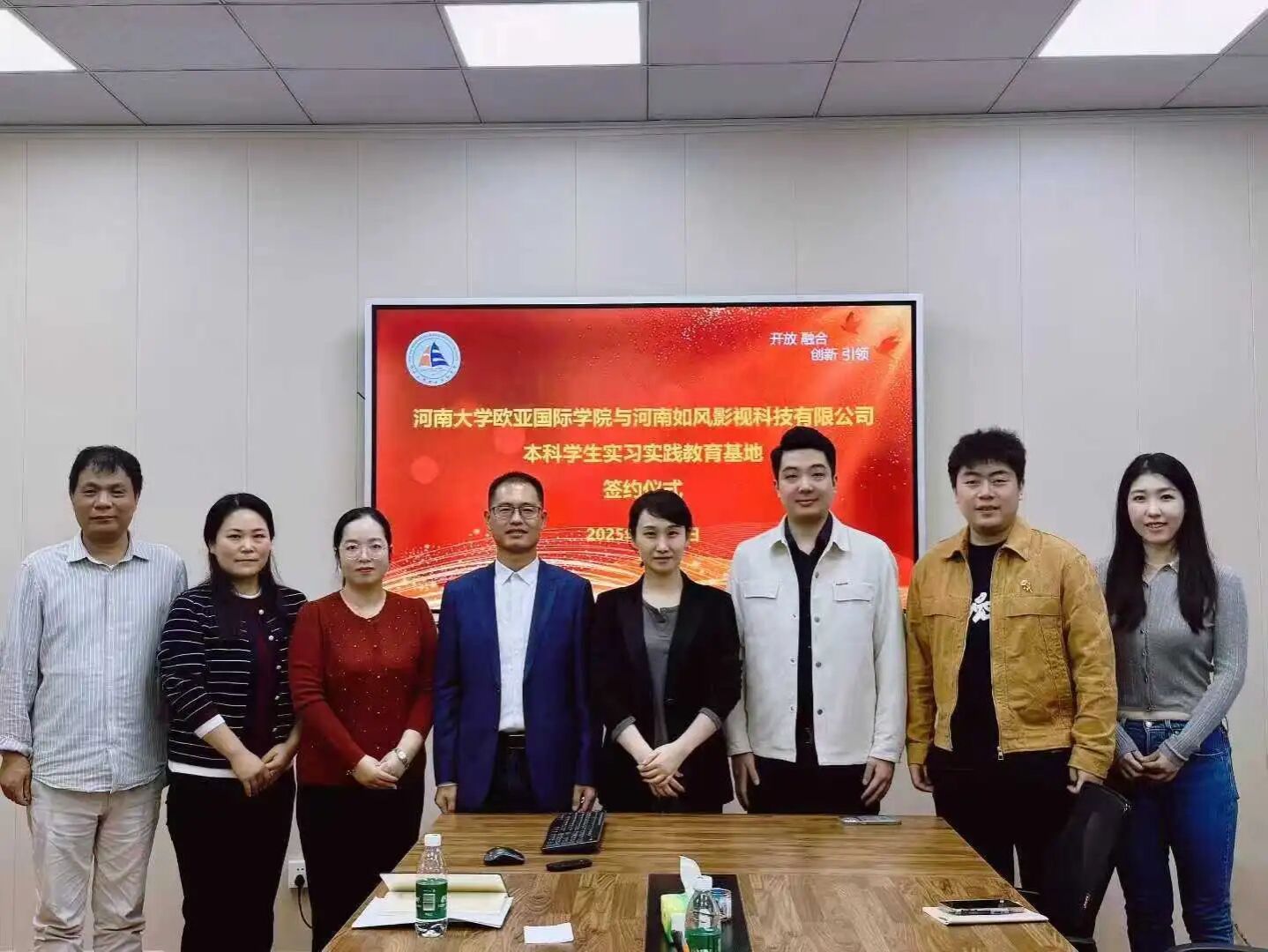 为深化校地协同育人机制,搭建优质教育实践平台,欧亚国际学院与郑州如风影视科技有限公司、河南笃实教育科技有限公司实习实践教育基地签约仪式在河南大学欧亚国际学院举行。学院党委书记刘佳明、院长邓浩,河南如风影视科技有限公司负责人、我校2012届校友郭泽瀚、2012届校友唐恬、河南笃实教育科技有限公司负责人、我校2018届校友李默晗及双方相关部门代表出席仪式,共同见证校企协同育人合作新篇章的开启。仪式由院党委副书记贺颖主持。