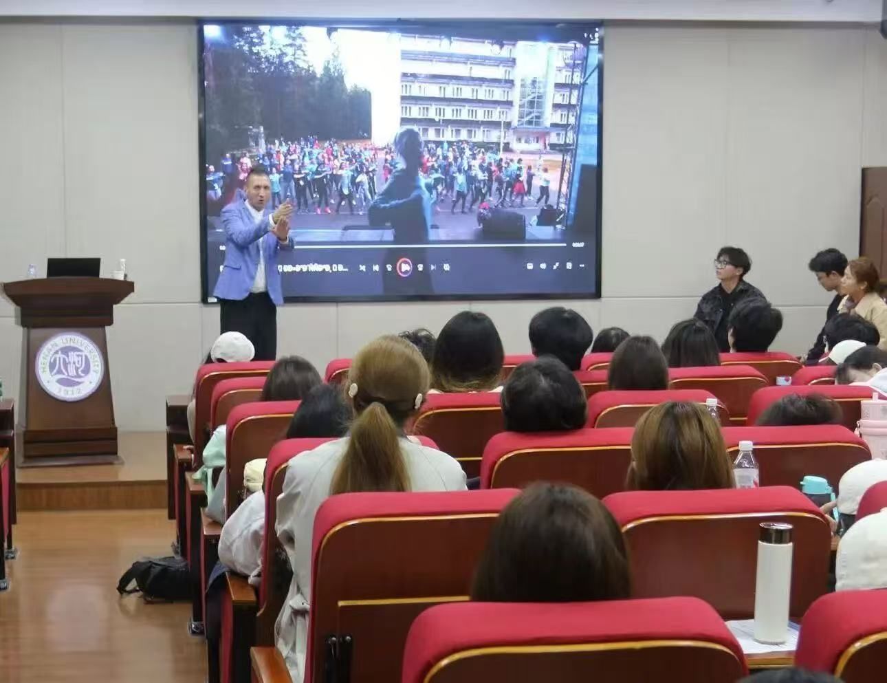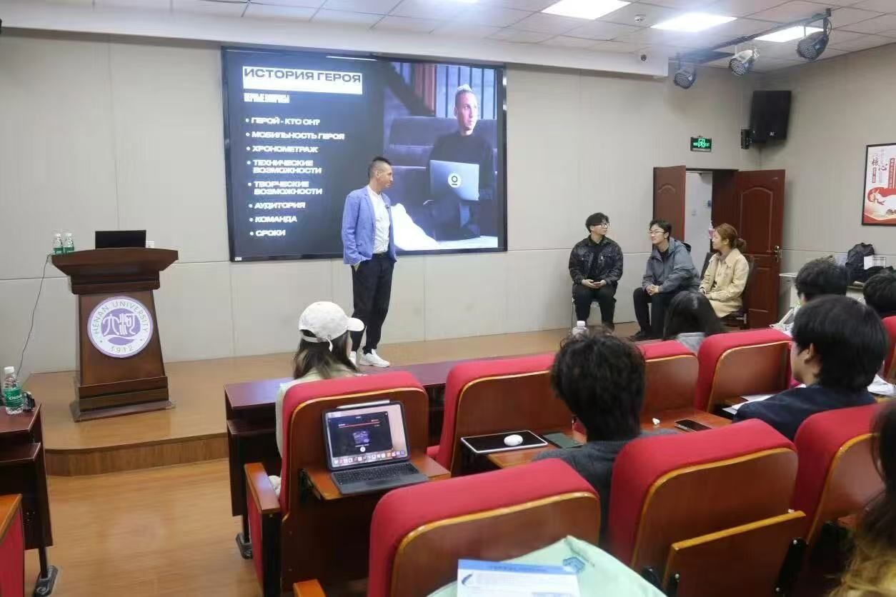 10月17日下午,白俄罗斯国立大学新闻学副教授、纪录片导演、脱口秀主持人奥列格·特里丰诺夫博士应邀为欧亚国际学院师生带来一场题为“人物传记拍摄与剪辑”的专题讲座,呈现了一场思想与技艺交融的学术盛宴。学院教师代表、播音与主持艺术专业学生近200人聆听讲座。