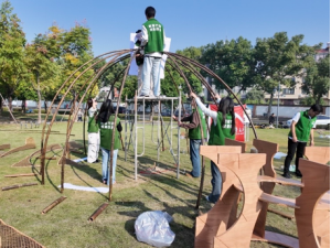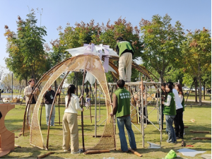 在紧张的六小时现场搭建过程中,来自两个学院的八名环境设计专业学生充分发挥专业特长,实现了从设计图纸到实体构筑物的完美转化。