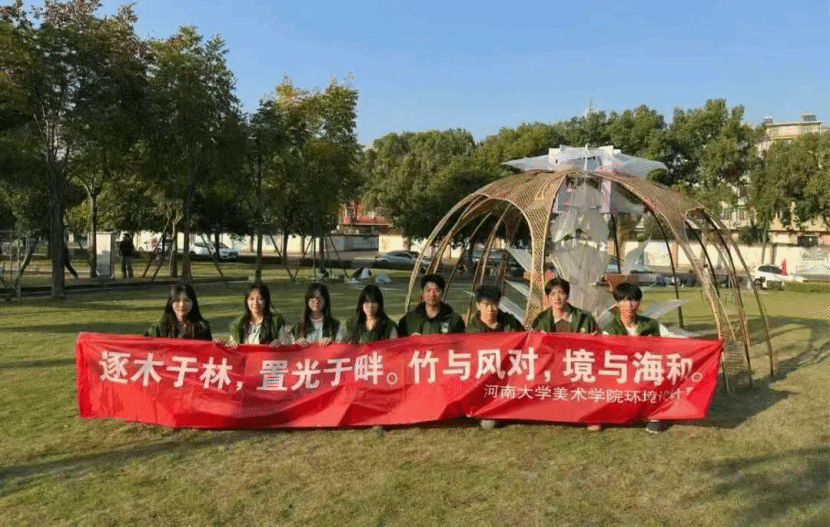 11月15日,中国美术家协会环境设计艺委会学术研究展系列——2025"心境空间 构筑和谐"空间艺术构造展在浙江金华建筑艺术公园盛大开幕。由河南大学欧亚国际学院与美术学院学生联合组建的参赛团队,其作品《兰竹水韵·在地共生》从全国56所高校的58支参赛队伍中脱颖而出,荣获大赛"创新创意奖"。