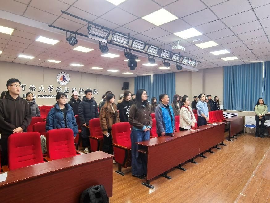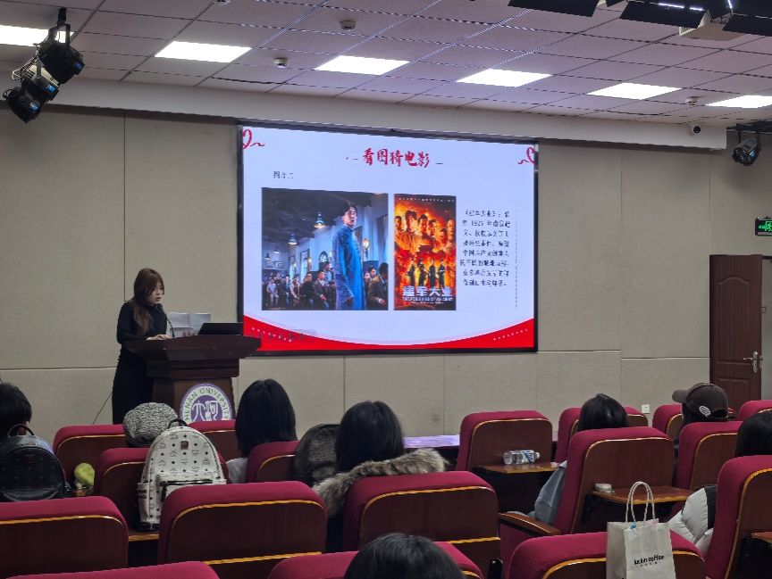近日,为深入学习贯彻党的二十届四中全会精神,深入体悟党的光辉历史与革命传统,进一步激发全体党员牢记初心使命、矢志奋斗的热情,欧亚国际学院学生各党支部在院二楼报告厅联合开展“红色根脉育栋梁,砥砺奋进正当时”特色主题党日活动。院党委副书记贺颖及各学生党支部党员代表约三十余人参加了此次活动,活动由学生第四党支部支部书记寇戎戎主持。