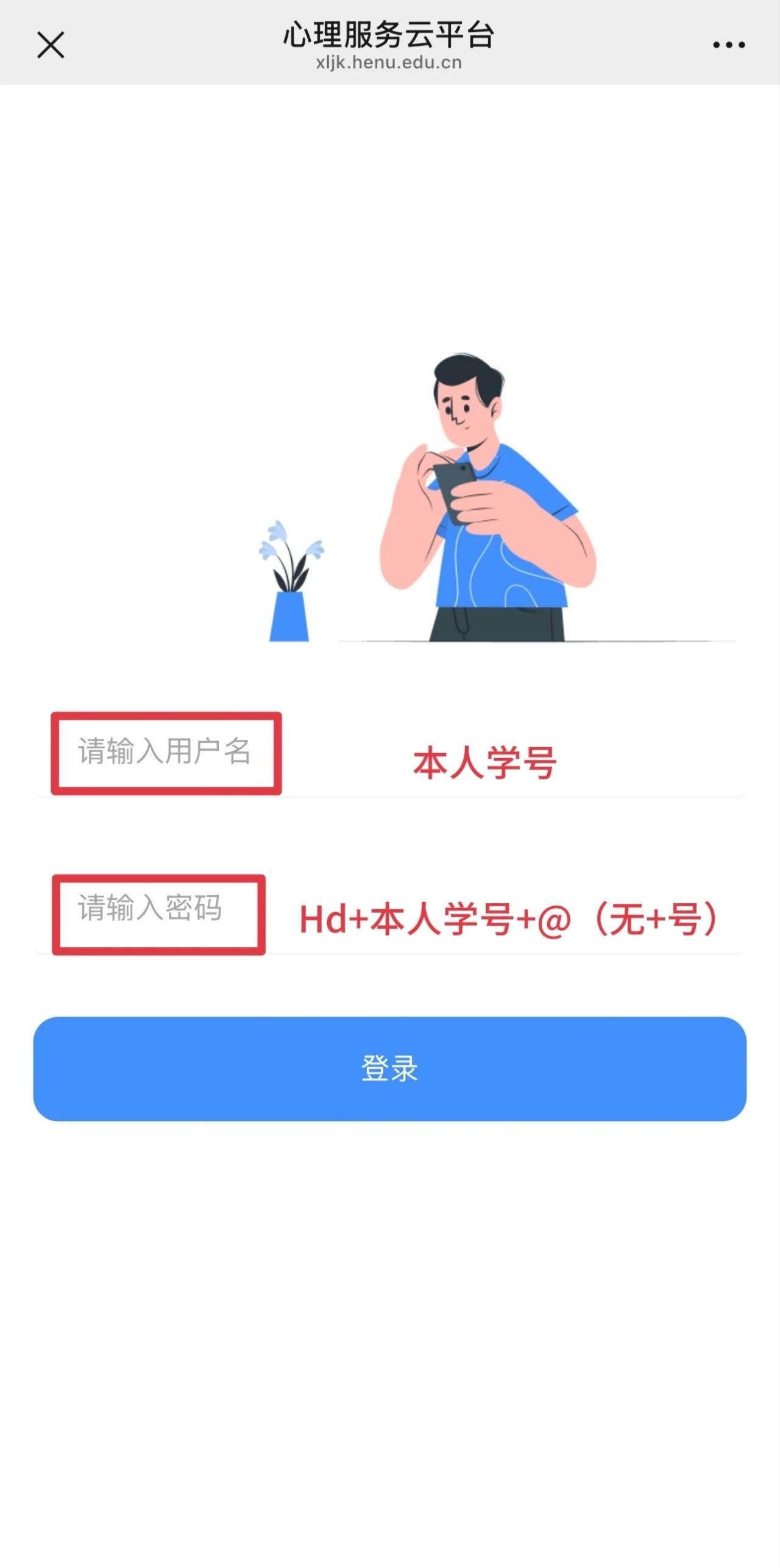 3.登录的时候注意啦!用户名是本人学号,密码是“Hd+本人学号+@”(无+号),注意区分大小写哦~检查无误点击“登录”即可进入。