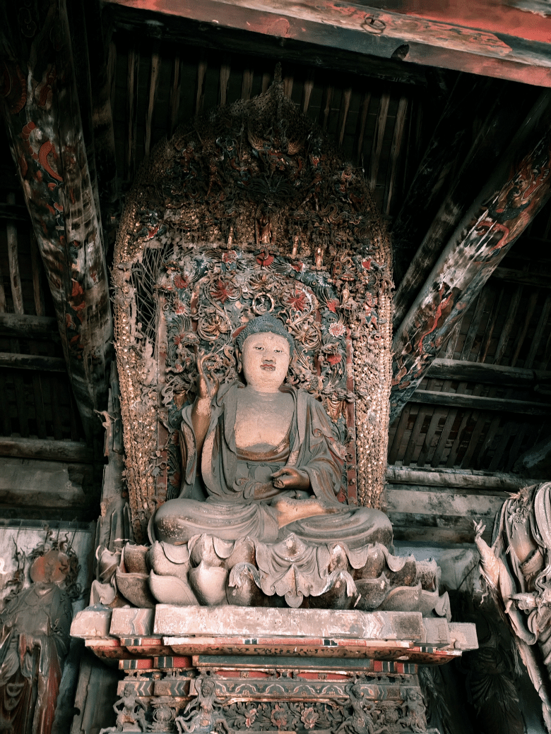 推开观音堂的木门,同学们不约而同地发出惊叹。殿内满布的明代悬塑令人目不暇接,五百余尊彩塑人物层层叠叠,营造出一个极尽繁华的佛国世界。在老师的讲解下,大家才明白这些悬塑的珍贵之处——它们不仅工艺精湛,更难得的是保存完好,让后人得以窥见明代雕塑艺术的巅峰成就。