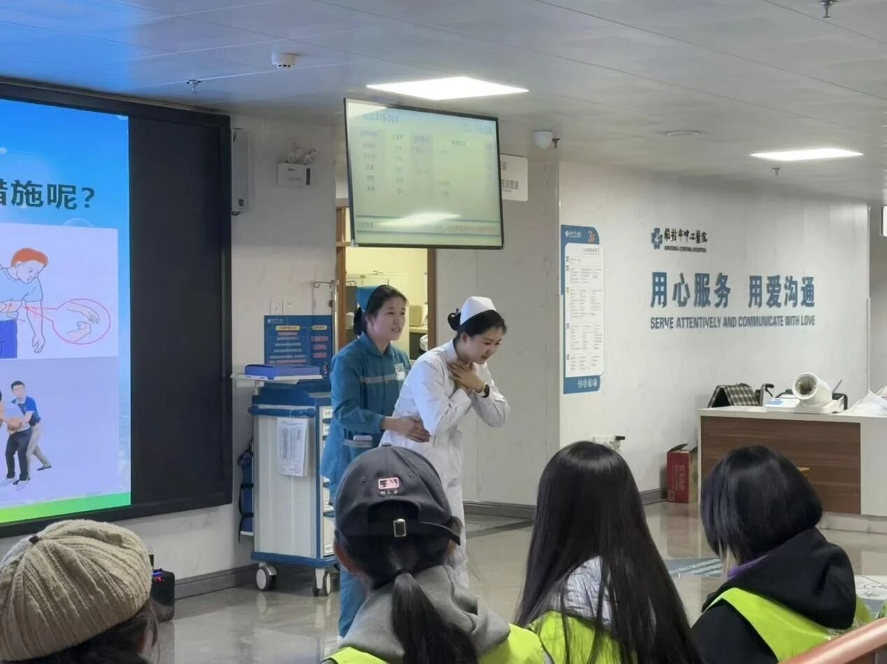 活动开篇,医护人员展开急救基础核心知识讲解,明确急救“黄金救援时间”的原则,同时梳理心脏骤停、气道梗阻等常见突发状况的识别要点,帮助志愿者们建立急救场景下的初步判断逻辑。随后,医护人员分场景示范海姆立克急救法,其中涵盖成人立位腹部冲击、儿童半蹲位适配力度冲击、婴幼儿卧位背部拍击+胸部冲击的不同操作方式,清晰说明冲击位置、力度控制及重复操作的时机。
