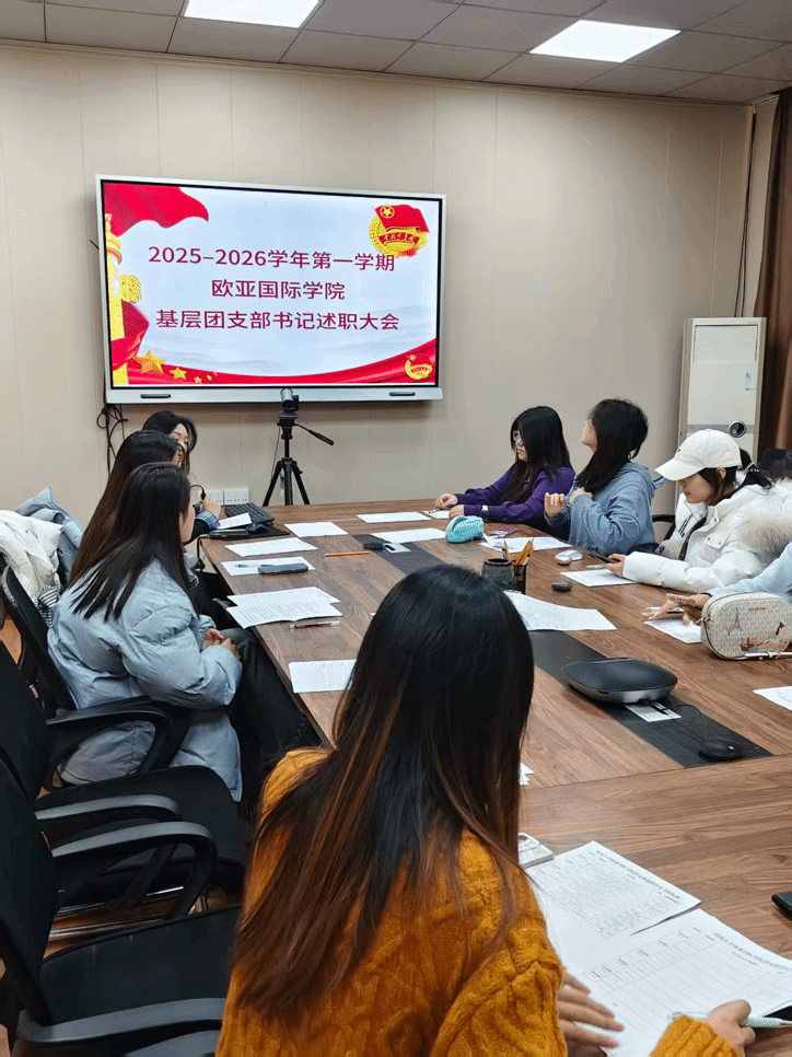 欧亚国际学院召开2025年度团支部书记述职会议为进一步加强基层团组织建设,切实提升团支书履职能力,搭建互学互鉴的交流平台,欧亚国际学院于1月9日在学院205会议室召开2025年度基层团支部书记述职大会。学院团委负责人赵婧舒、学生团委副书记及各班级团支书参会,共同总结过往工作成效,谋划未来发展蓝图。本次述职大会严格遵循“实事求是、客观公正”的原则,采用“现场述职+集中评议”的形式展开。各专业团支书依次上台,对照《团支部述职评议考核标准》,围绕思想引领、组织建设、...