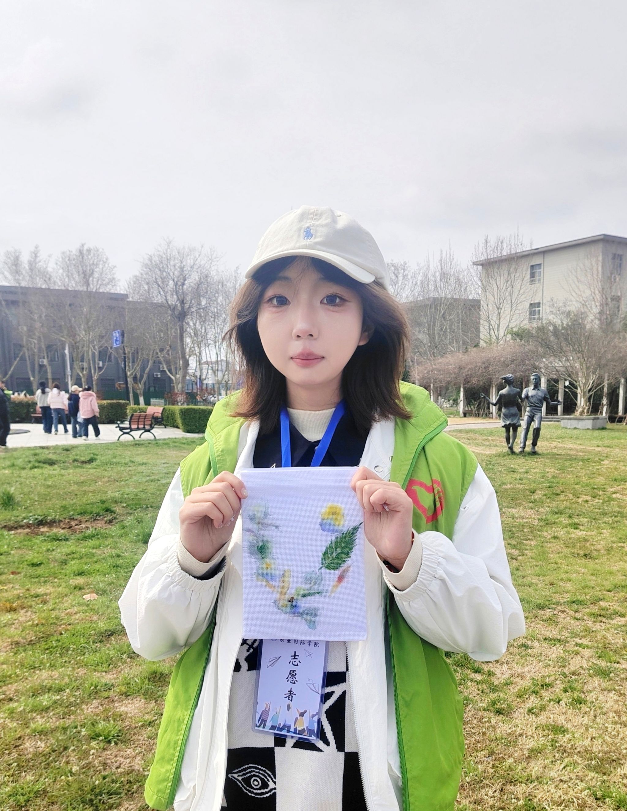 自主创作后,大家带着作品前往铁塔湖展示拓印作品,入目所及皆是春日与创意的融合。打卡交流、分享创作思路,在欢声笑语中感受手作的乐趣,也让春日校园的美好,在指尖流转、心中留存。