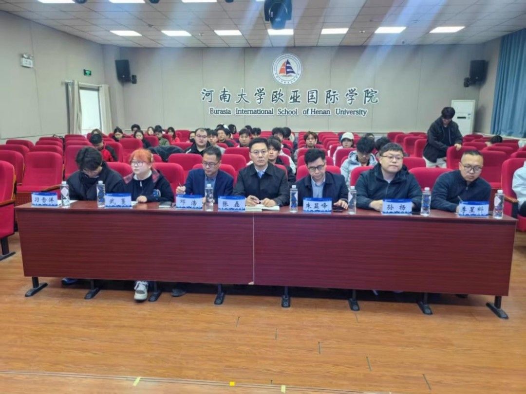 3月17日,2026中国国际大学生创新大赛河南大学欧亚国际学院院赛在学院二楼报告厅举行。河南大学就业创业指导中心主任张磊、教务处副处长朱显峰、生命科学学院青年教师孙杨、李星科及欧亚国际学院院长邓浩出席活动并指导工作。
