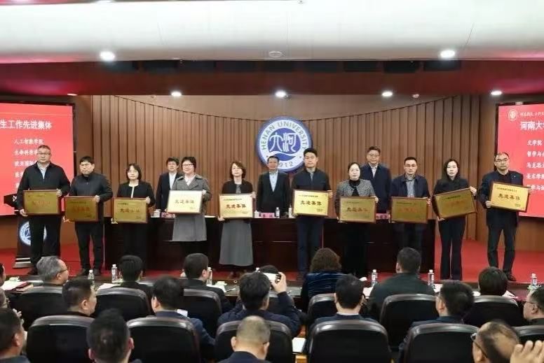 近日,学校在金明校区249会议室召开学生工作会议,表彰2025年度学生工作先进集体和个人。欧亚国际学院凭借扎实的育人成效,荣获“河南大学学生工作先进集体”及“2025年度优秀心理健康工作站”两项集体荣誉,学院2022级辅导员彭韬老师荣获“最受欢迎辅导员”荣誉称号,2022级学前教育专业学生杨佳晟作为国家奖学金获奖代表登台领奖。