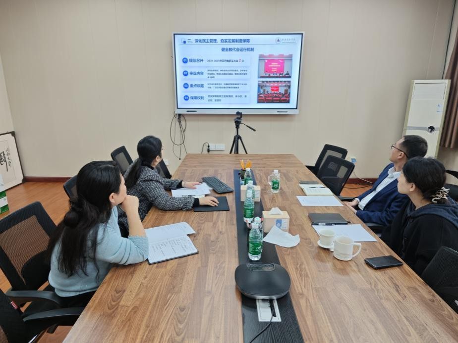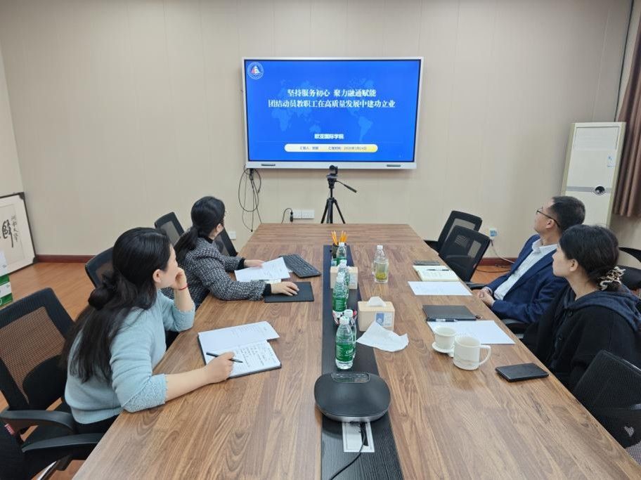 院党委对学院工会工作取得的成效给予充分肯定,认为院工会工作定位精准、举措务实、亮点突出,始终围绕学院国际化办学与高质量发展中心任务,在团结凝聚教职工、强化思想引领、维护职工权益、弘扬高尚师德、助力育人实践等方面发挥了重要作用。班子成员围绕提升服务保障水平、打造工会工作特色品牌、团结动员教职工建功立业等方面展开深入交流,提出针对性指导意见。